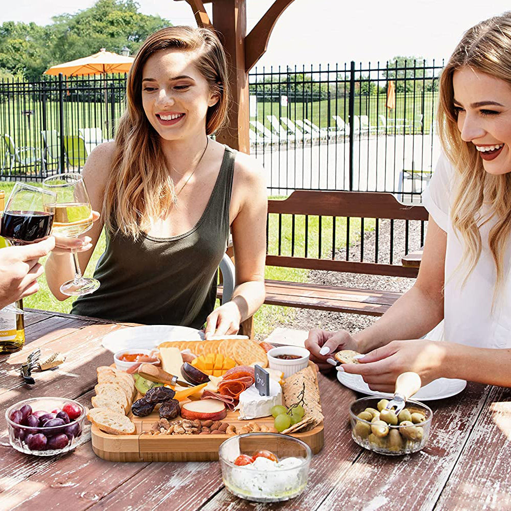 ★竹製のあたたかみのある雰囲気がテーブル全体をグッとお洒落に惹きたててくれます。また、竹製はBPAを含んでいないので、チーズは色、化学物質に腐らせることはありません。